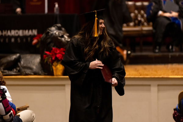 Freed-Hardeman University held its fall commencement ceremony Friday, Dec. 15, 2023, in Loyd Auditorium where more than 100 students received certificates, associates, baccalaureate, master's and doctoral degrees. The mission of Freed-Hardeman University is to help students develop their God-given talents for His glory by empowering them with an education that integrates Christian faith, scholarship and service. With locations in Henderson and Memphis, FHU offers associate, bachelor's, master's, specialist and doctoral degrees. More information is available at fhu.edu.